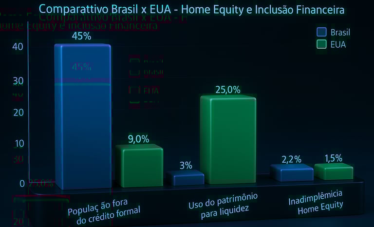 As operações de Home Equity no Brasil apresentam uma baixa taxa de inadimplência, variando entre 1% e 3%, refletindo a segurança do modelo, que conta com garantia real atrelada a imóveis.